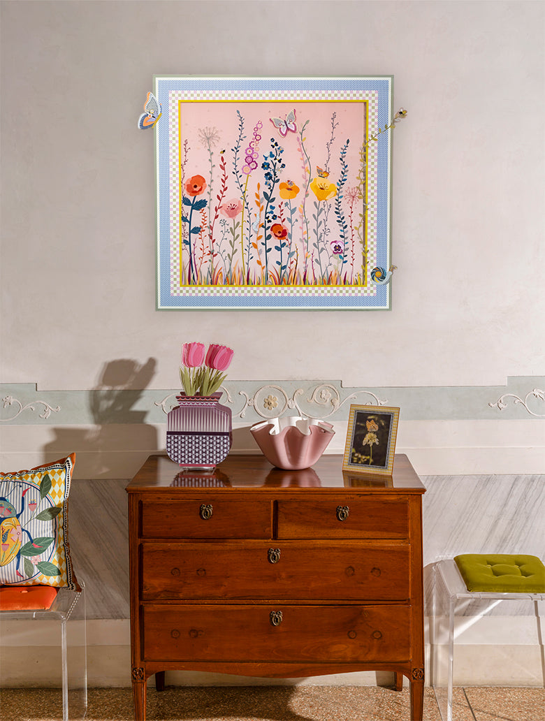 Amelie is a decorative acrylic crystal painting that interprets the beauty of nature through the luminous and poetic image of a flower garden.