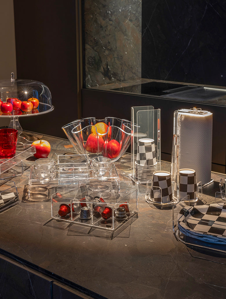 The Ice Tower is a wheeled bottle rack with a modern and refined design, equipped with an integrated champagne bucket.